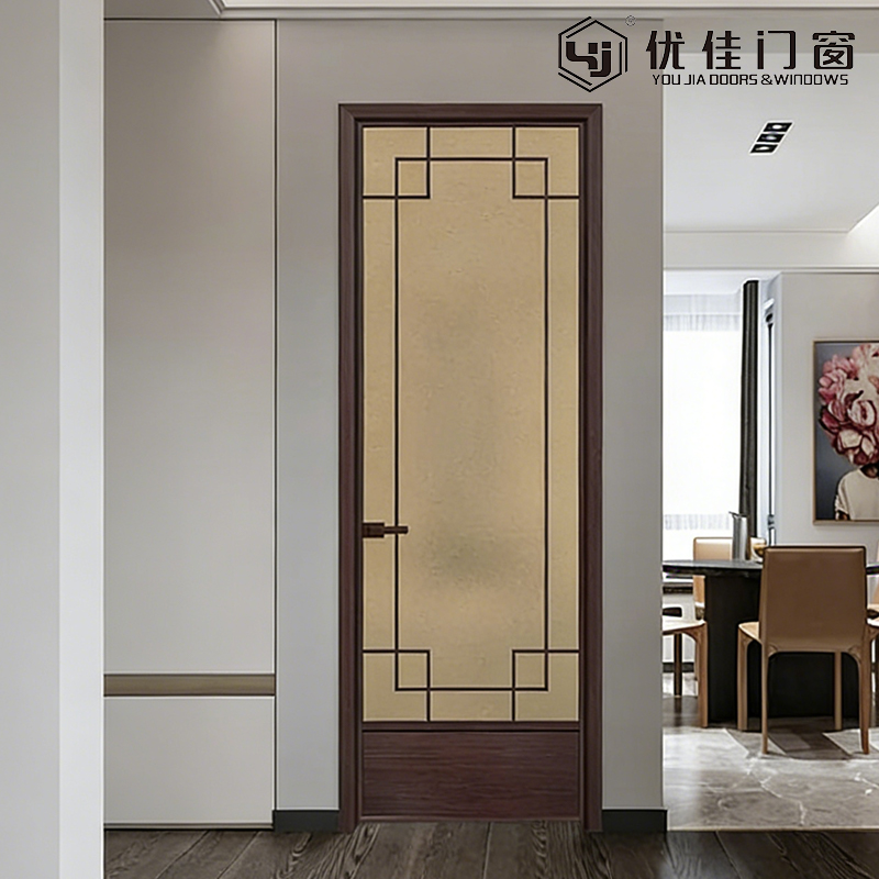 A porta se destaca com vários benefícios atraentes. Seu acabamento em nogueira preta traz um tom quente e luxuoso que adiciona profundidade e elegância a qualquer ambiente, enquanto o design de balanço articulado garante acesso suave e desobstruído, superando as opções de portas deslizantes em espaços onde a instalação de trilhos é impraticável. O painel de vidro fosco equilibra a difusão da luz natural e a privacidade, iluminando os interiores sem sacrificar o isolamento. O painel inferior sólido melhora a estabilidade estrutural, o isolamento acústico e a durabilidade, garantindo uso a longo prazo com manutenção mínima.