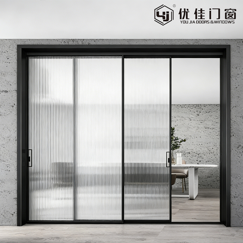 Fabricada com materiais de alta resistência e resistentes ao desgaste, a moldura preta fina garante durabilidade a longo prazo e estabilidade estrutural, resistindo ao desbotamento e à deformação. O vidro canelado vertical é tratado para aumentar a resistência a arranhões e a difusão da luz, com padrões lineares que acrescentam profundidade tátil e caráter artístico ao design. O mecanismo de deslizamento suave opera silenciosamente e perfeitamente, com hardware seguro para desempenho confiável. Seu perfil linear limpo integra-se facilmente com outros elementos arquitetônicos, combinando harmoniosamente com instalações de portas giratórias e janelas de batente.